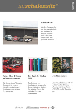 Das Magazin „Im Schalensitz“ mit Beiträgen aus der Welt der Mobilität – damals, heute und morgen, feiert sein Comeback.
